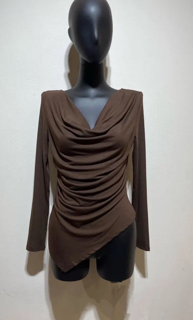 Ασύμμετρο Ντραπέ Τοπ – Διαθέσιμο σε Μαύρο και Καφέ